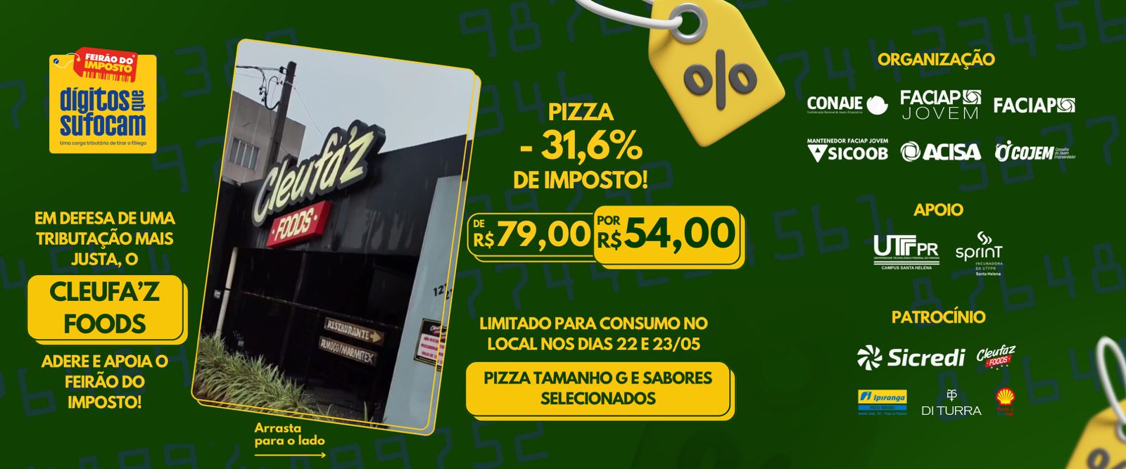 adquirir pizzas sem a incidência de impostos no Cleufa’z Foods. Esta ação visa