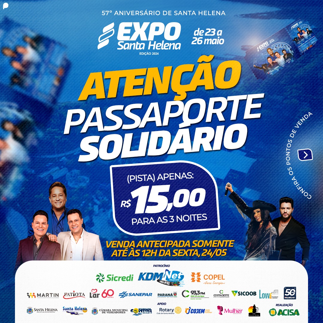 Atenção: Prorrogado até 18h de hoje, ingressos a 15 reais válido para as três noites de show em Santa Helena