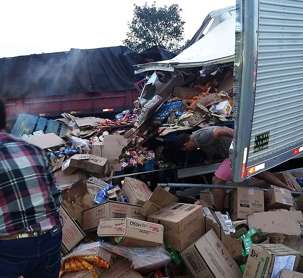 macarrão instantâneo, se espalhou pela pista e acostamento.