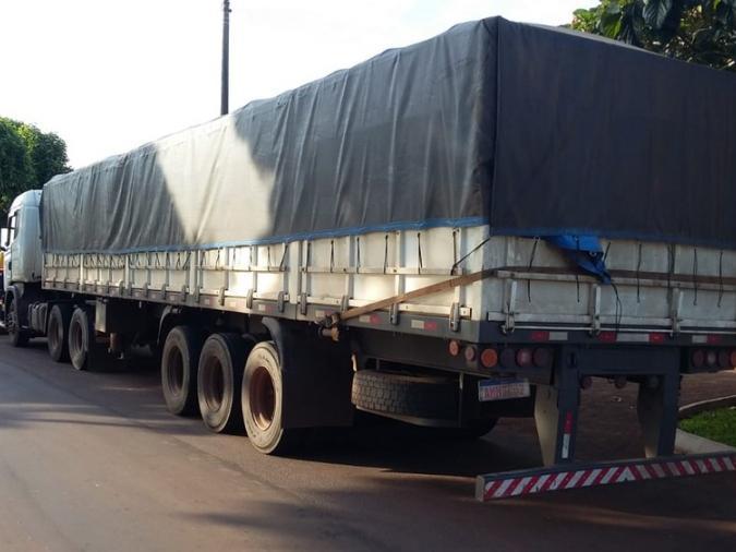 uma carreta 600 caixas de cigarros contrabandeados, em Diamante d'Oeste, na