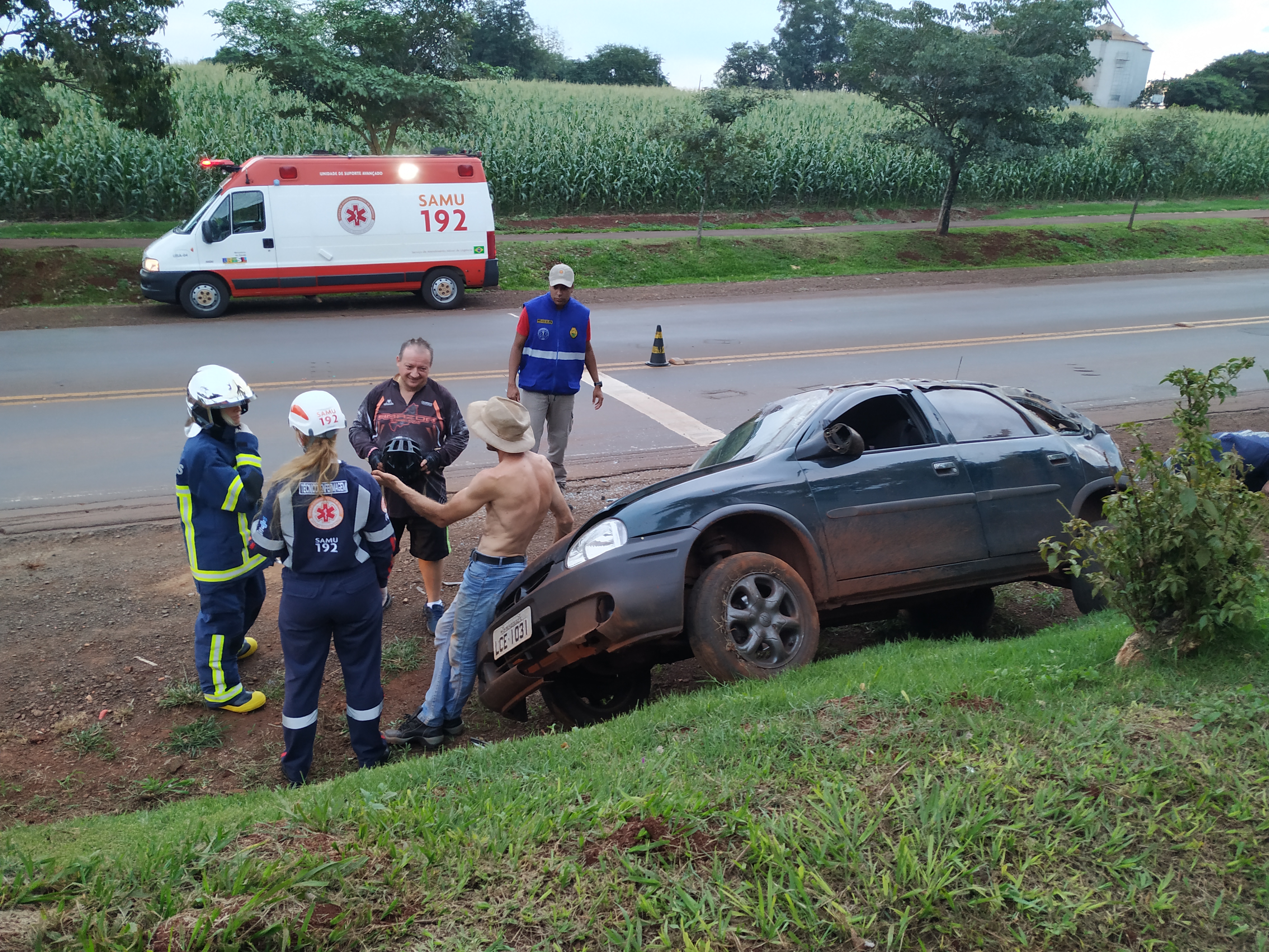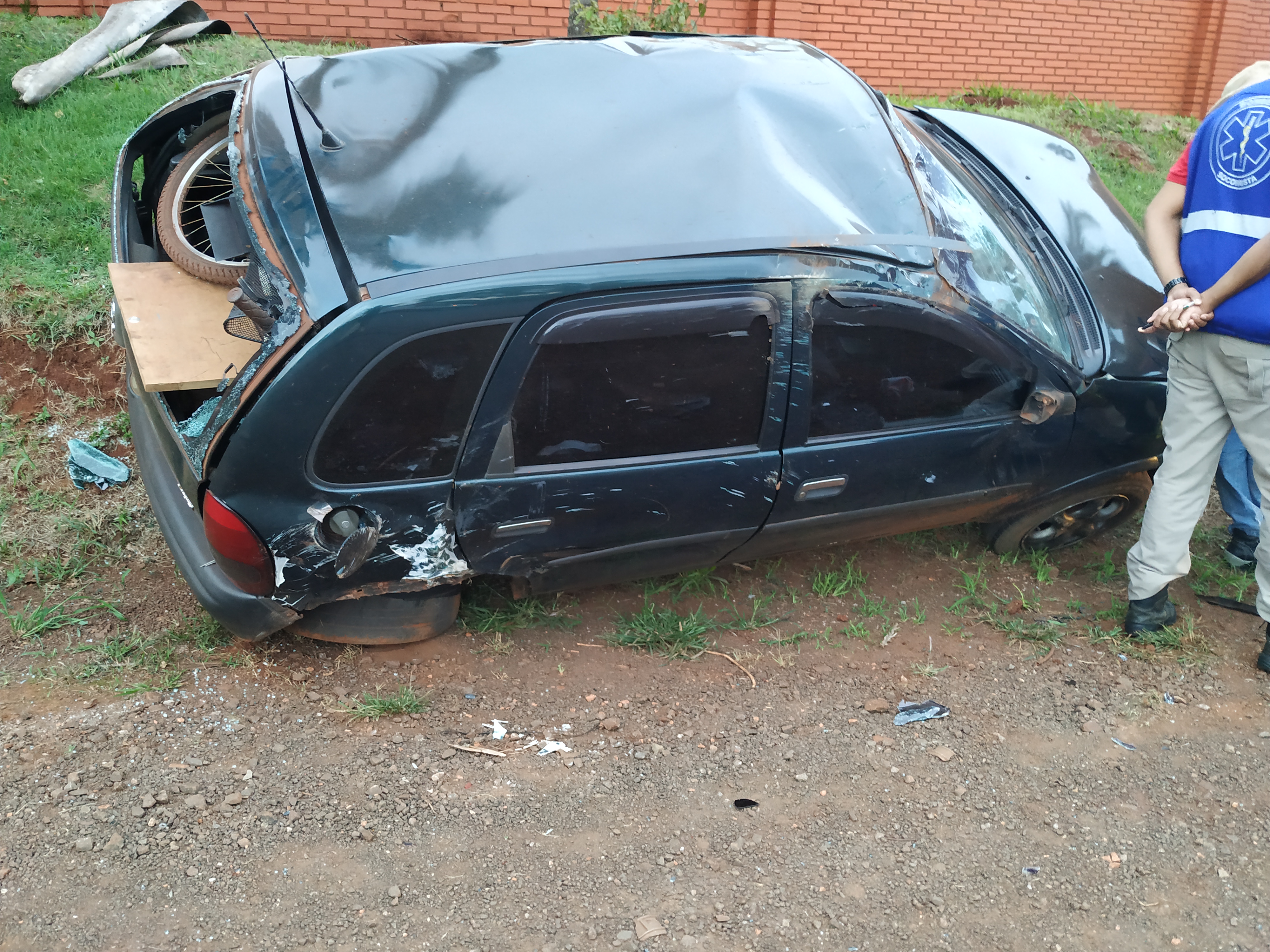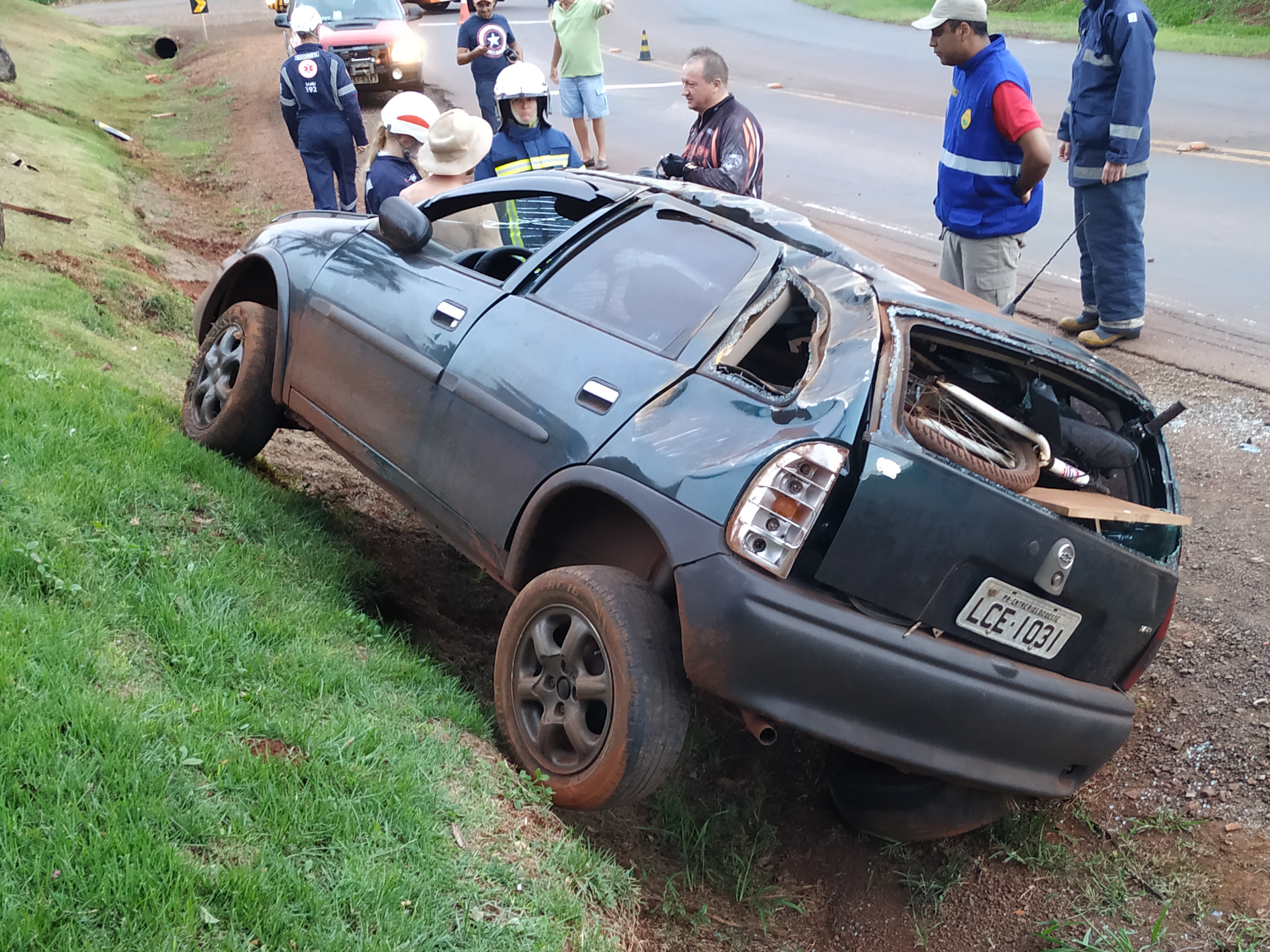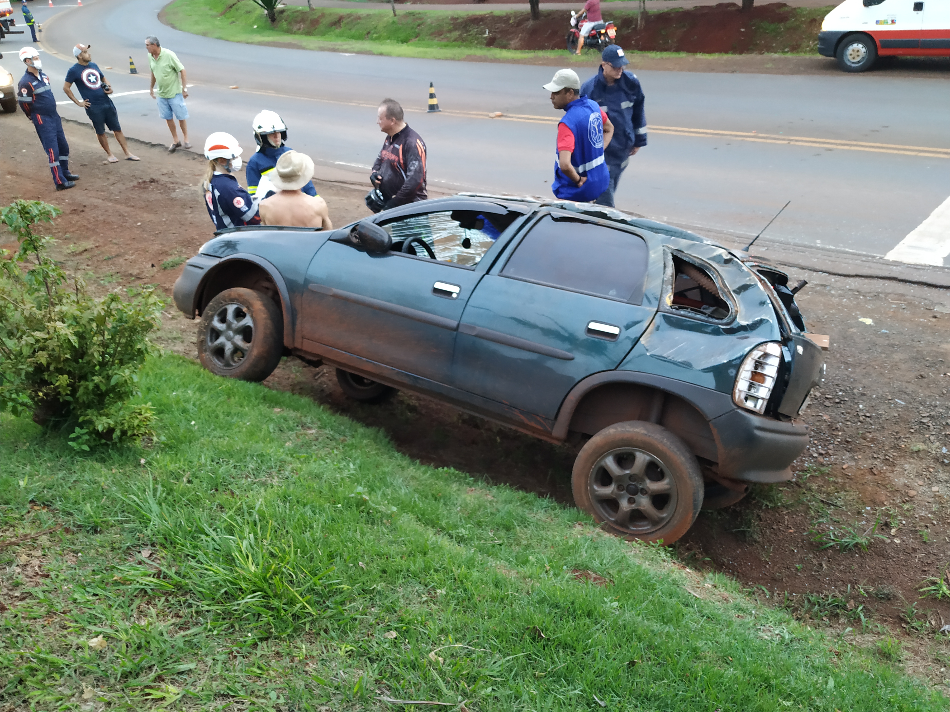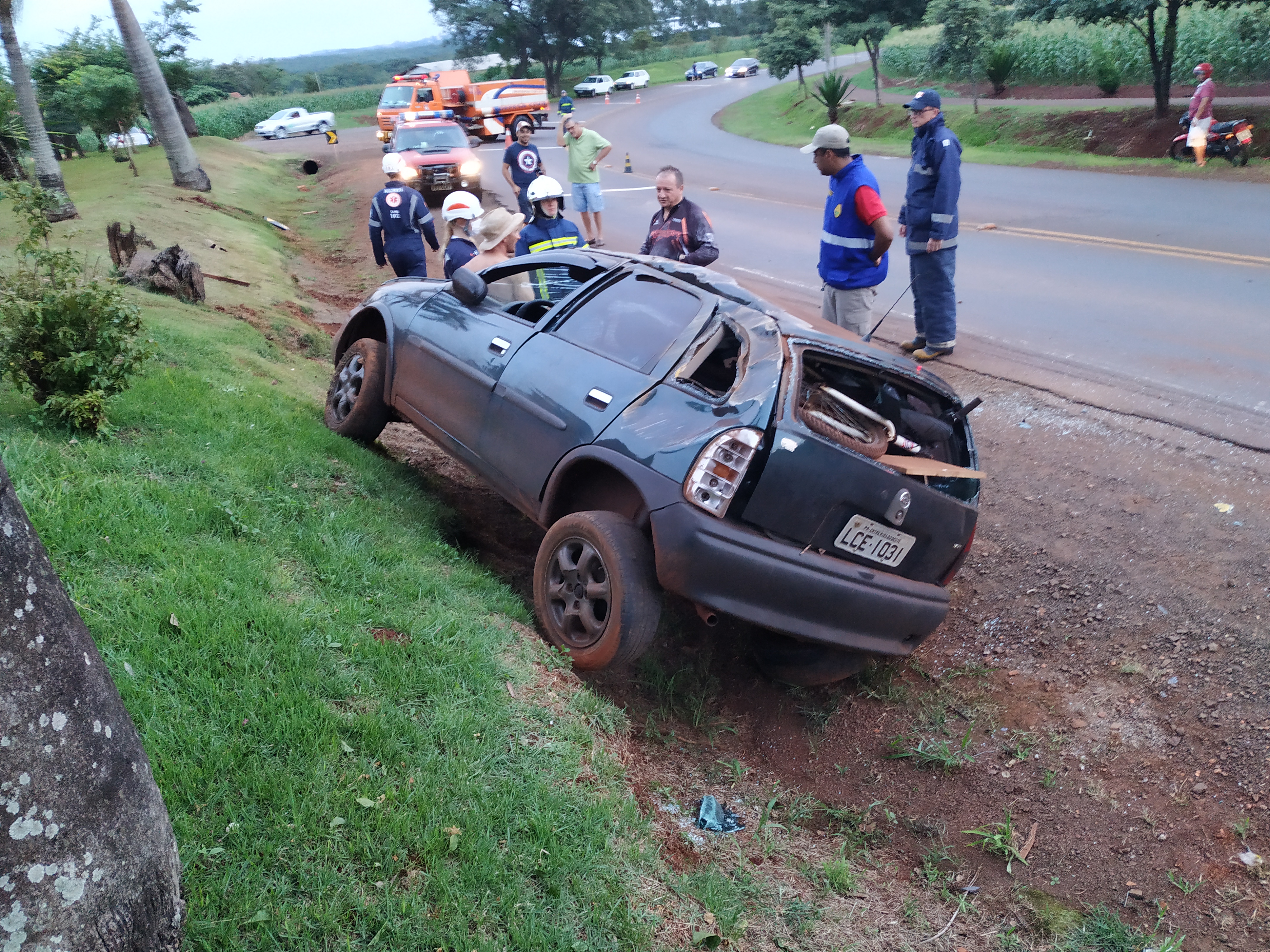 Por volta das 18h00 deste sábado (13) um automóvel GM Corsa emplacado em Entre Rios do Oeste capotou na curva do cemitério de Sub Sede que frequentemente é palco de acidentes de trânsito.
