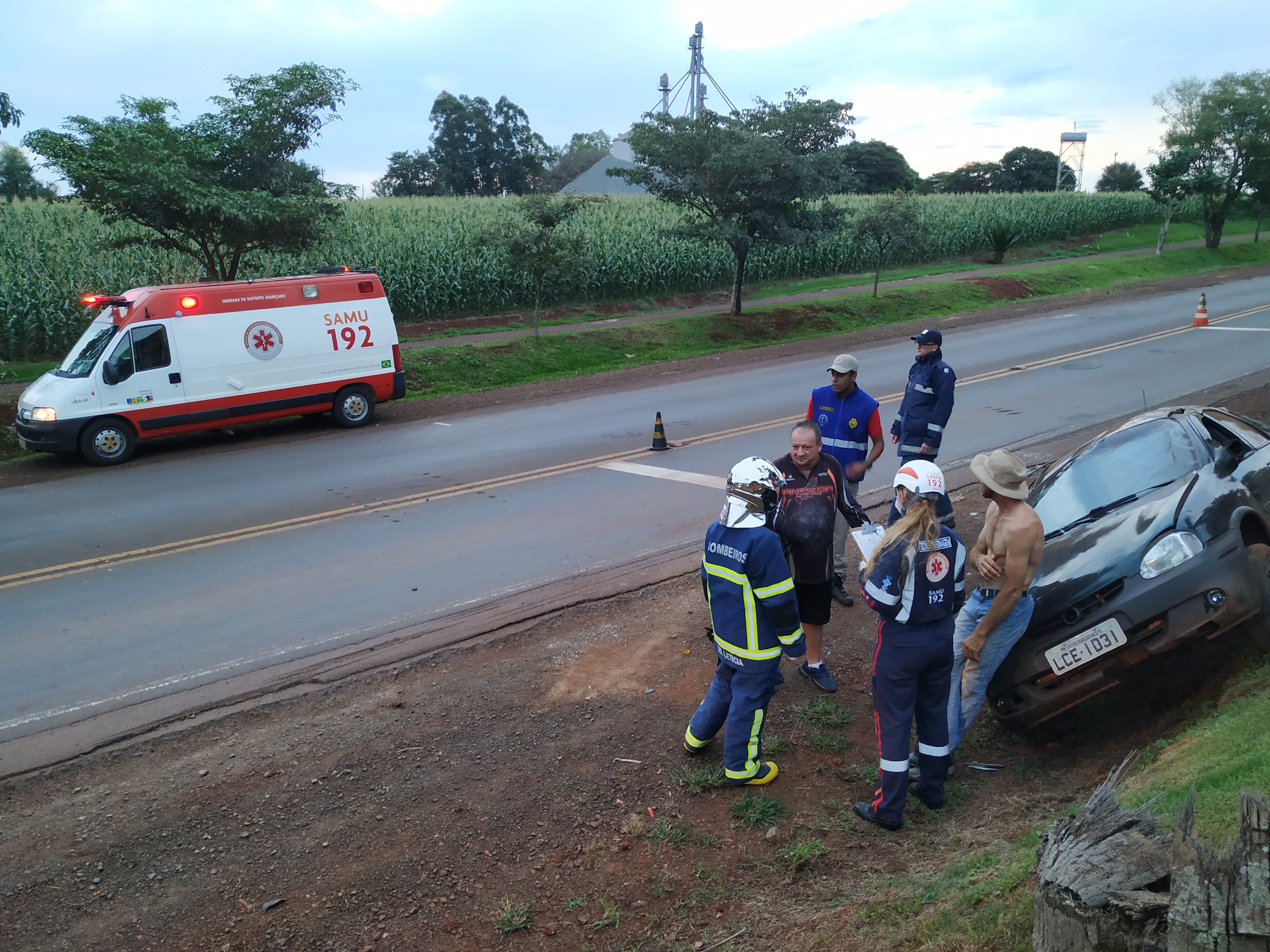 O condutor seguia sentido Santa Helena ao município de origem e suspeita que um pneu tenha estourado após forçar o veículo para tentar vencer a curva.