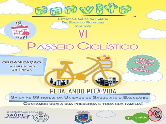 No próximo sábado (18) o município, através a Unidade Básica de Saúde Eduardo Rodrigues, do bairro Vila Rica promove partir das 8h00 um passeio ciclístico de conscientização no trânsito. A iniciativa conta com apoio da Polícia Militar que, no momento da largada, fará uma explanação sobre os cuidados necessários para um trânsito seguro e também repassará dicas de como pedestres, ciclistas e motoristas devem se comportar para respeitar os direitos de cada classe.