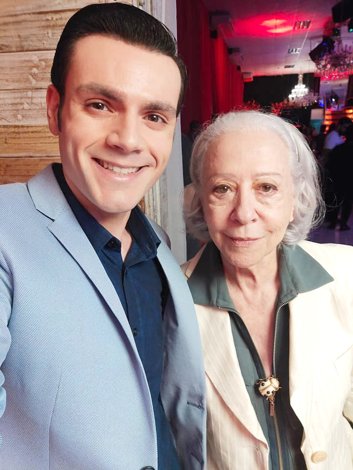 | O ator toledano com Fernanda Montegnegro (arquivo pessoal) |