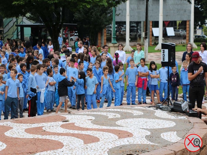 Em Santa Helena o evento aconteceu na manhã de hoje (29) em frente à prefeitura municipal e contou com a participação dos estudantes das escolas municipais Tancredo Neves, Marechal Deodoro da Fonseca, Inês Mocelin e a Escola Especial Zilda Arns Neumann – APAE.