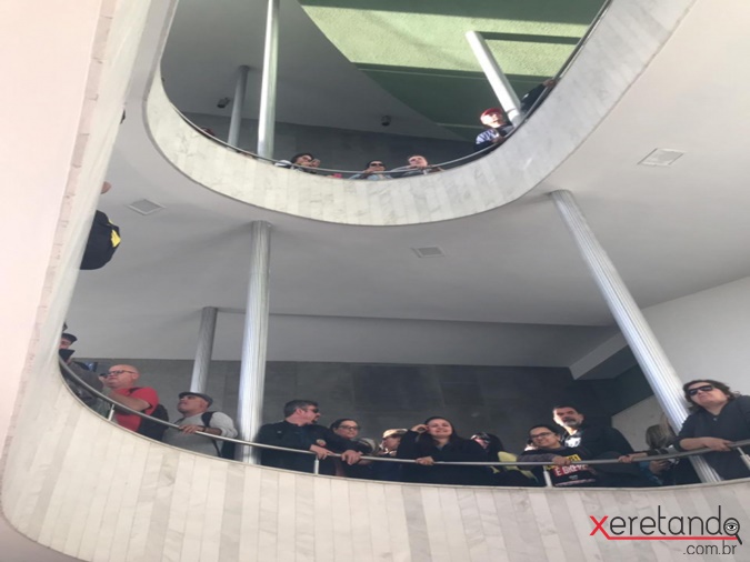 Após provocar uma reação de servidores, o deputado Ricardo Arruda saiu antes da invasão. Os demais deputados permaneceram ilhados no plenário.