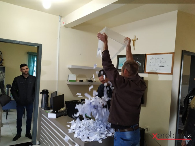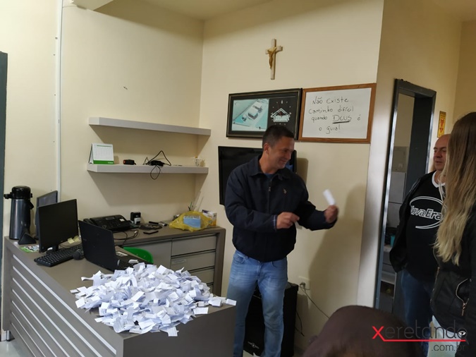 O prefeito em exercício Paulinho Vasatta foi responsável por retirar o bilhete premiado que teve o prestígio também do secretário de Obras, Aldo Colombelli, entre outras lideranças importantes do município.