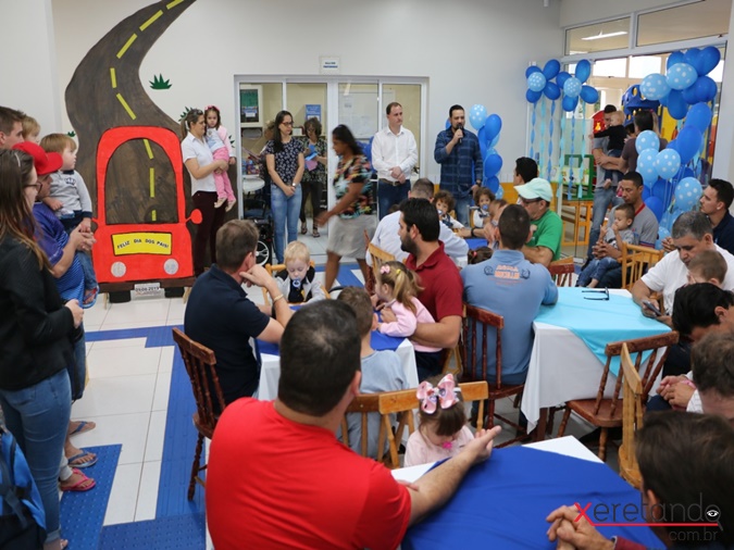 Além da confraternização, eles receberam uma lembrancinha do CMEI pelo Dia dos Pais.