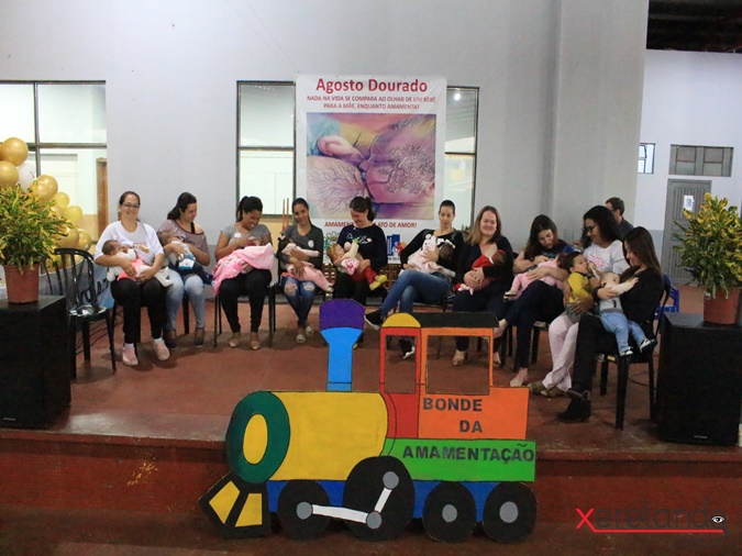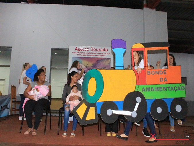 Na sequência a equipe do PSF do Caramuru fez uma linda apresentação no placo, juntamente com as mães, em momento de amamentação. Uma foto oficial também foi tirada das mães amamentando e as futuras mães observando e sendo incentivadas a fazerem o mesmo.
