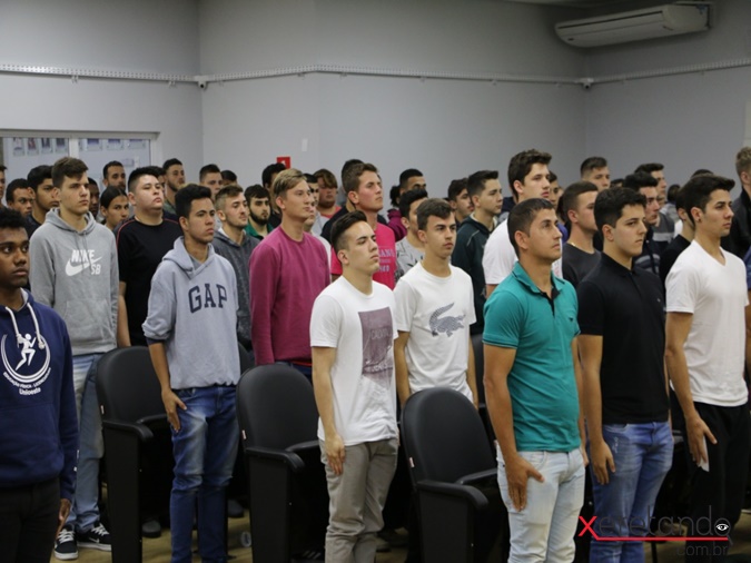 Na cerimônia, os jovens realizaram o juramento e cantaram o Hino Nacional. O delegado do Serviço Militar do Posto de Recrutamento e Mobilização de Cascavel –1º Tenente Edson Brás Grisoski salientou a importância do ato e do juramento dos jovens em defender a pátria, salientando que o compromisso vale por toda a vida.