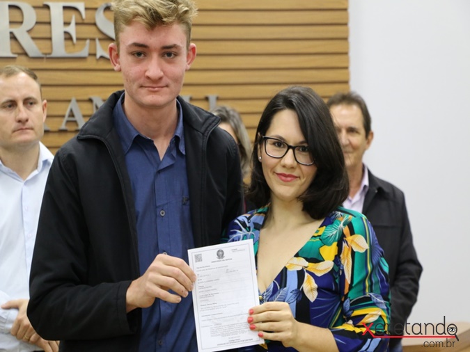 Na manhã desta quinta-feira (5), na Câmara Municipal de Vereadores, cerca de 150 jovens santa-helenenses dispensados do serviço militar obrigatório realizaram o ato de Juramento à Bandeira. O prefeito Evandro Miguel Grade (Zado), que também é presidente da Junta de Serviço Militar de Santa Helena acompanhou a solenidade.
