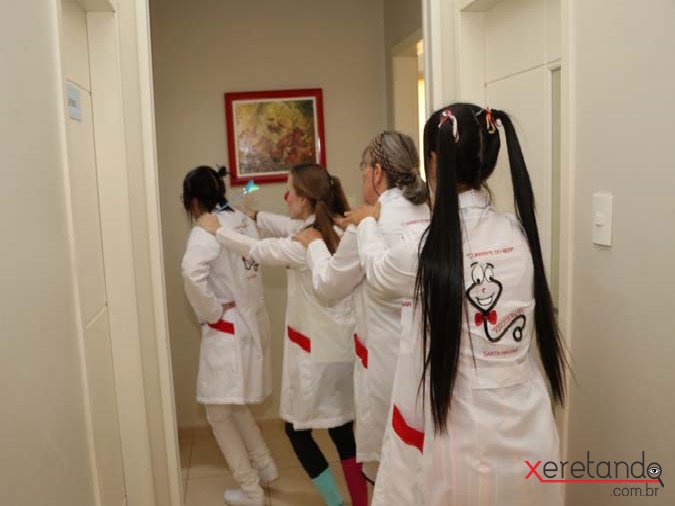 Mas a brincadeira não para por aí. Após visitar todos os quartos, elas interagem com os funcionários e médicos que também muitas vezes mantém-se sob pressão diante do cotidiano típico destas profissões.