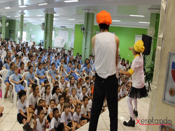 Os alunos das Escolas Municipais de Santa Helena prestigiaram ontem (01) e hoje (02) o "Teatro Poupedi"; o espetáculo é uma parceria entre a Sicredi Vanguarda e a Administração Municipal, através da Secretaria de Educação e Cultura, com foco na educação financeira.