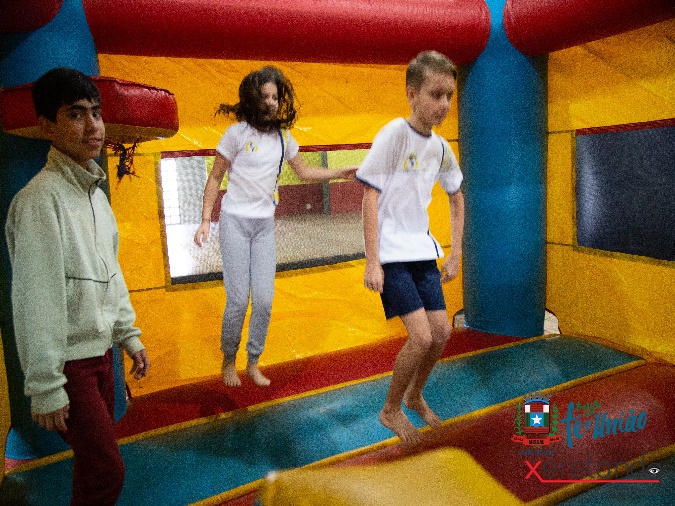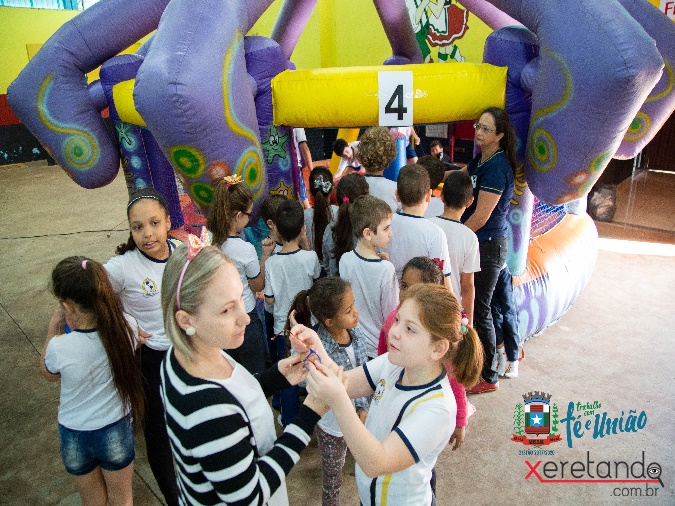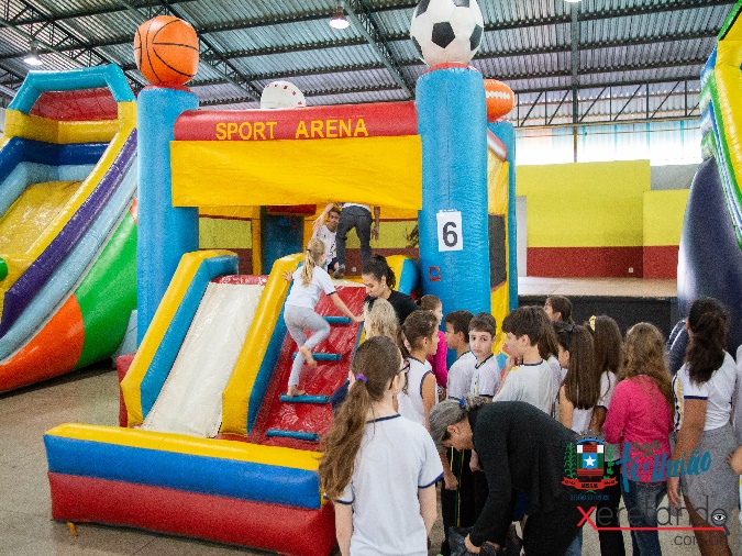 O objetivo da secretaria é proporcionar atividades diferentes, estimulando os alunos e professores a momentos de convivência fora de sala de aula, interagindo com alunos de outras escolas. São 10 brinquedos infláveis disponíveis, onde os alunos foram divididos em grupos e revezaram nos brinquedos, oportunizando que todos pudessem participar da brincadeira. Se via nos olhos e no sorriso de cada criança a alegria estampada.
