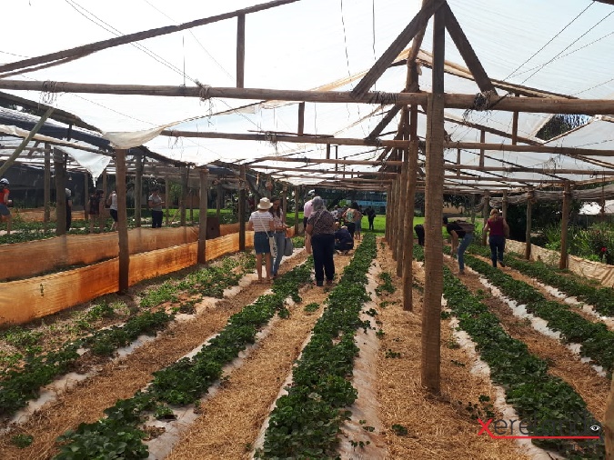 Neste mês as ações tiveram continuidade e no dia 08, por exemplo, as mulheres foram até Serranópolis do Iguaçu em uma visita técnica sobre as atividades econômicas que utilizam a mão de obra familiar e geram renda às famílias que não possuem grandes área de terras. Lá elas conheceram uma produção orgânica de morangos que proporciona renda importante aos cultivadores, uma vinícola que da mesma forma é gerida pela família e também as vantagens e particularidades do turismo rural daquele Município onde existe um pesque pague que foi além da piscicultura, oferecendo passeios de charretes, trilhas e demais atividades em contato com a natureza. Ainda, se dirigiram ao acesso da antiga estrada do Colono, trecho que foi fechado há muitos anos mas que faz parte da história da região.
