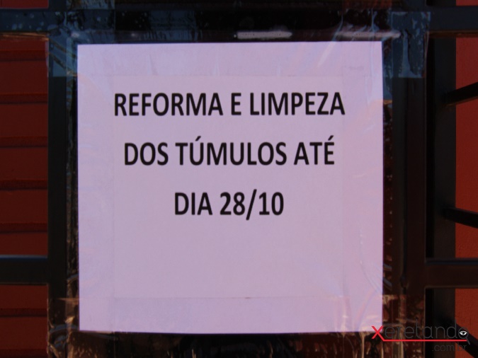 Neste ano, a Secretaria Municipal de Obras informou que a manutenção e limpeza de jazigos e túmulos por parte dos familiares serão permitidas até o dia 28, próxima segunda-feira.