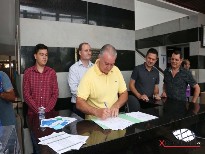 Na manhã desta segunda-feira, autoridades, agricultores e empresários reuniram- se no hall de entrada da Prefeitura Municipal para assinatura das ordens de serviço de cerca de 53 quilômetros de calçamento que irão beneficiar dezenas comunidades do interior do Município.