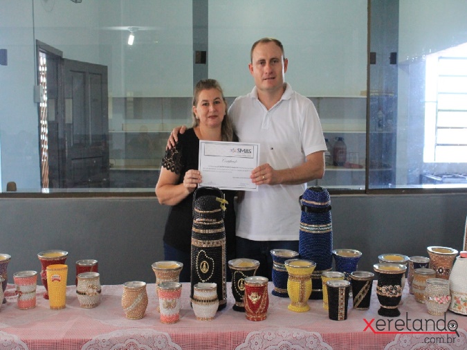 Por fim, na última quarta-feira, a secretária e o prefeito Zado, estiveram em Linha Santa Cruz entregando a diplomação para as mulheres que também participaram do curso de artesanato em cuias.