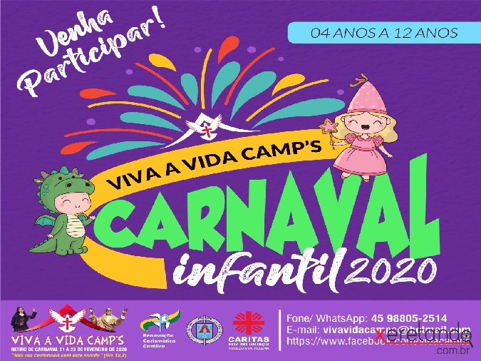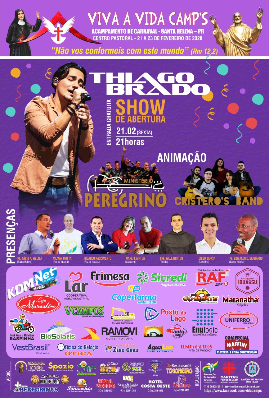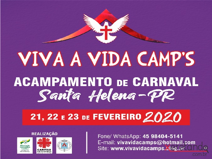 Carnaval VIVA A VIDA CAMPs, em Santa Helena acontece de 21 a 23 de fevereiro, no centro pastoral da Igreja Católica, com shows, retiro e celebrações.