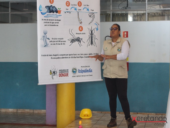 Os trabalhos estão sendo realizados nas escolas e nas residência, com palestras educativas e trabalho de vistoria e recolha de material que possam acumular água e consequentemente se tornar um criadouro do mosquito aedes aegypti.