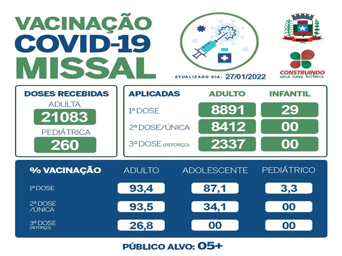 Confira a atualização do boletim de vacinação desta quinta-feira em Missal