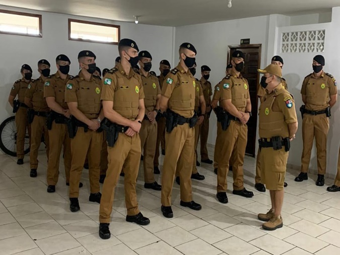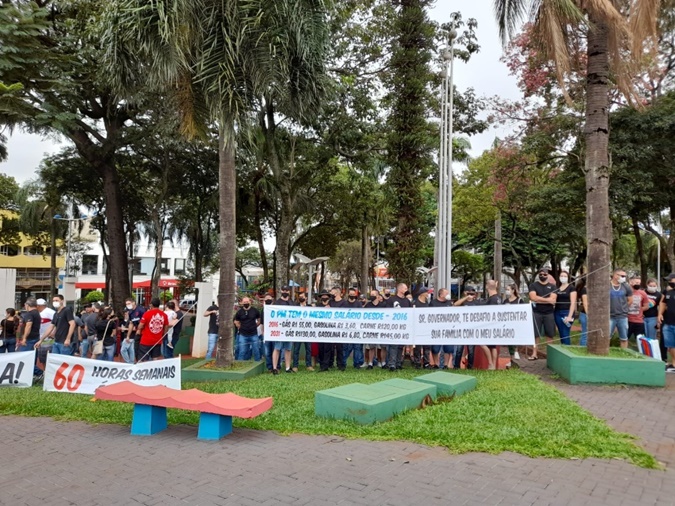 Policiais realizaram uma manifestação em Toledo; pedido foi por reposição salarial e ajuste da carga horária