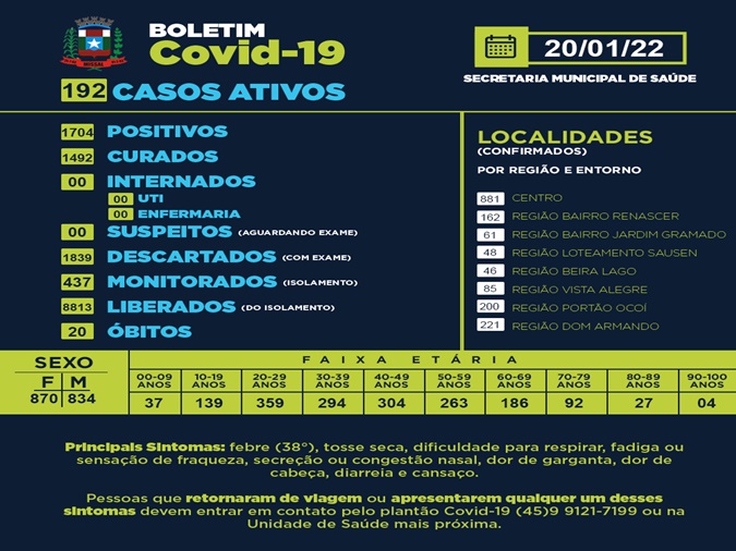 Com 64 novos casos positivos de Covid-19 Missal chega a 192 casos ativos da doença