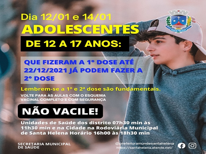 Adolescentes de 12 a 17 anos podem se vacinar em janeiro
