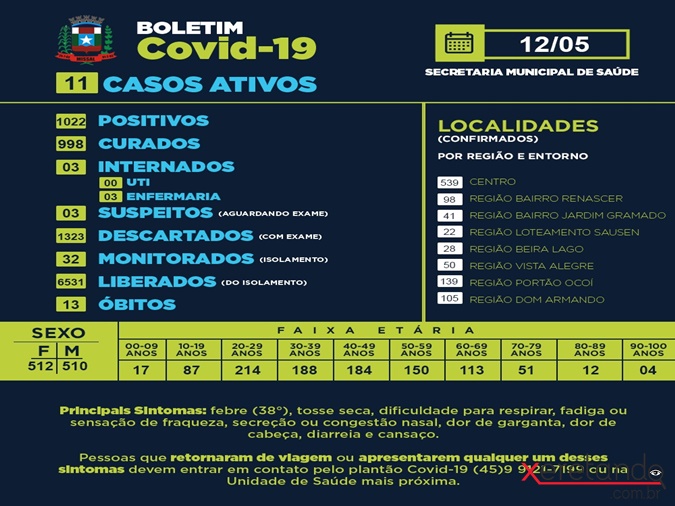 Com 95 casos ativos, Santa Helena confirma 46º óbito por Covid