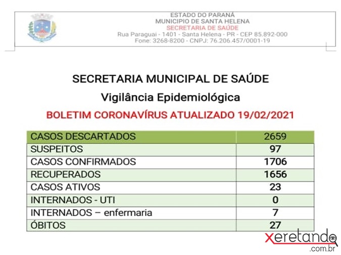 Sobe para 50 o número de casos ativos de Covid em Santa Helena