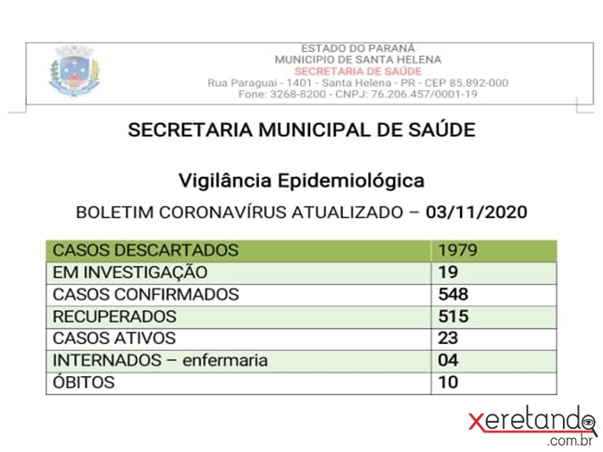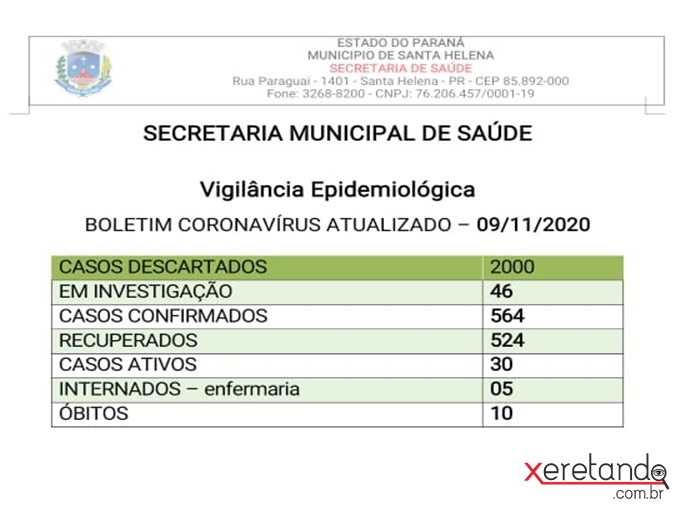 Sobe para 30 o número de casos ativos de Covid em Santa Helena