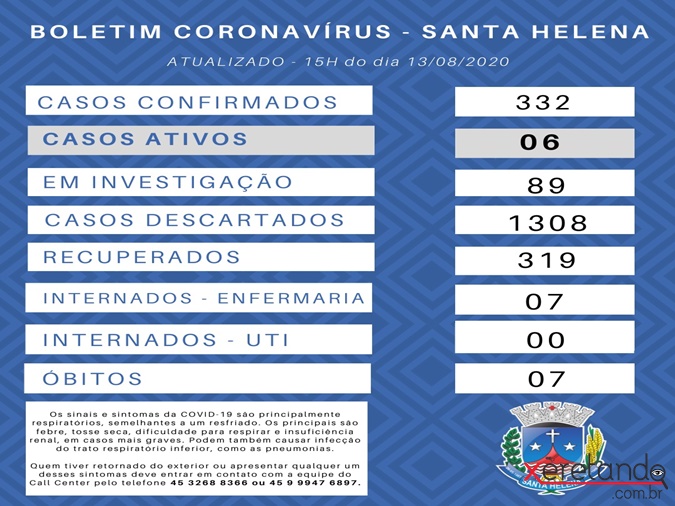 Restam 07 casos ativos de Covid-19 em Santa Helena