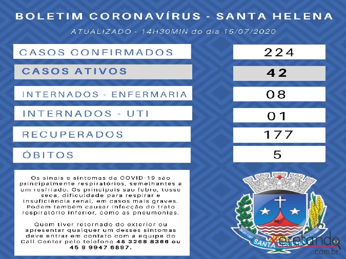 Casos ativos de Covid-19 diminuem em Santa Helena