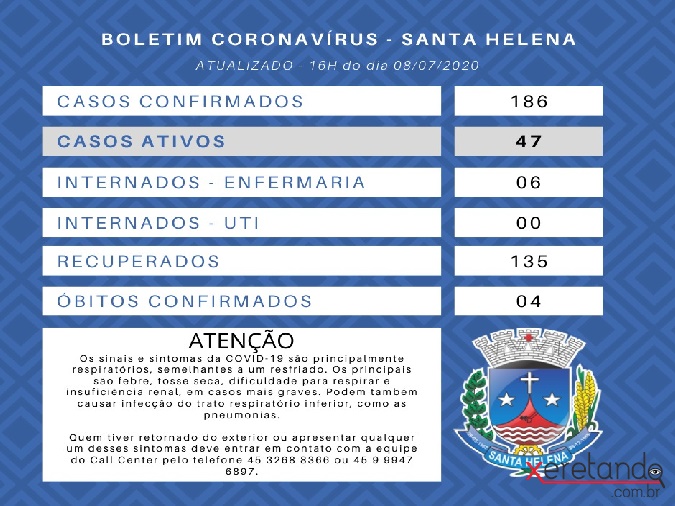 138 pessoas já se recuperaram do Coronavírus em Santa Helena