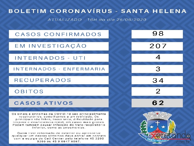 Santa Helena tem 62 casos ativos de Coronavírus