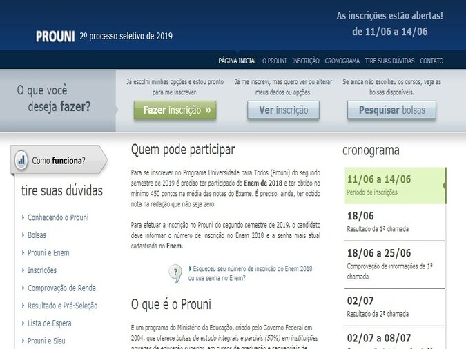 ProUni ofertará 169,2 mil bolsas de estudo; inscrições até dia 14 de junho