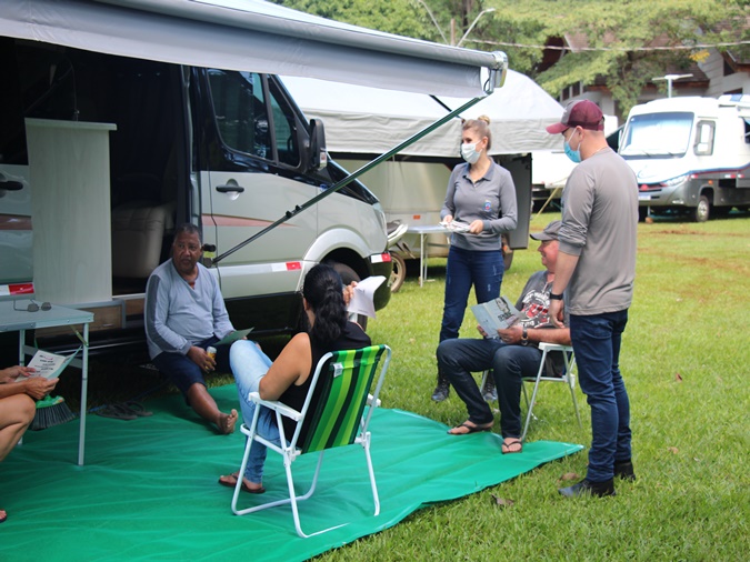 Agentes de endemias de Santa Helena orientam visitantes sobre o combate à Dengue