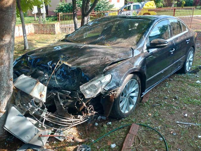 São Roque: Carro bate em muro, arranca poste e vai parar no lote ao lado