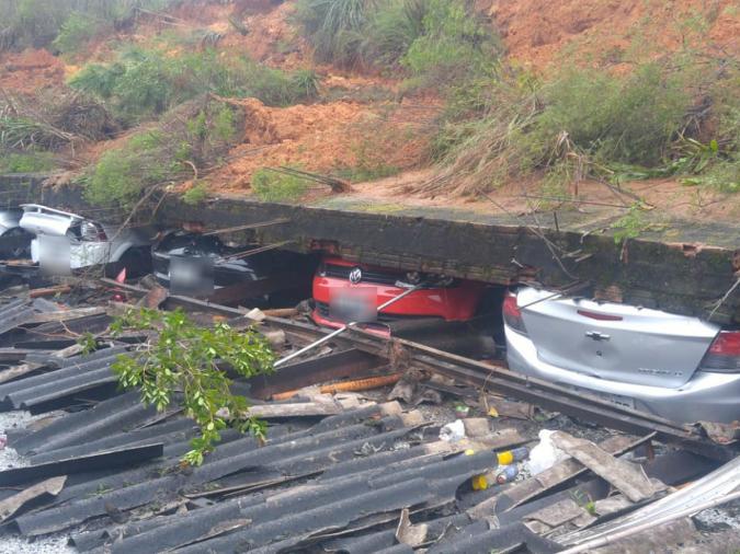 Muro de conjunto residencial cai em cima de mais de dez carros, em Curitiba