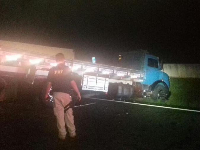 Polícia Rodoviária de Santa Helena atende acidente com caminhão