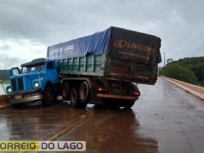 Caminhão fica atravessado sobre ponte entre Pato Bragado e Entre Rios do Oeste