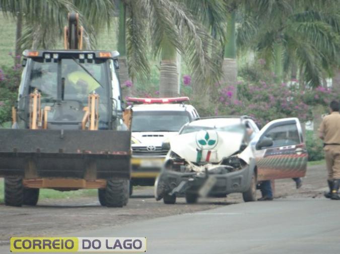 Veículo colide em retroescavadeira na PR 317 em Santa Helena